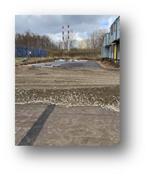 • Основание повторно уплотнялось катком, укладывался геотекстиль,